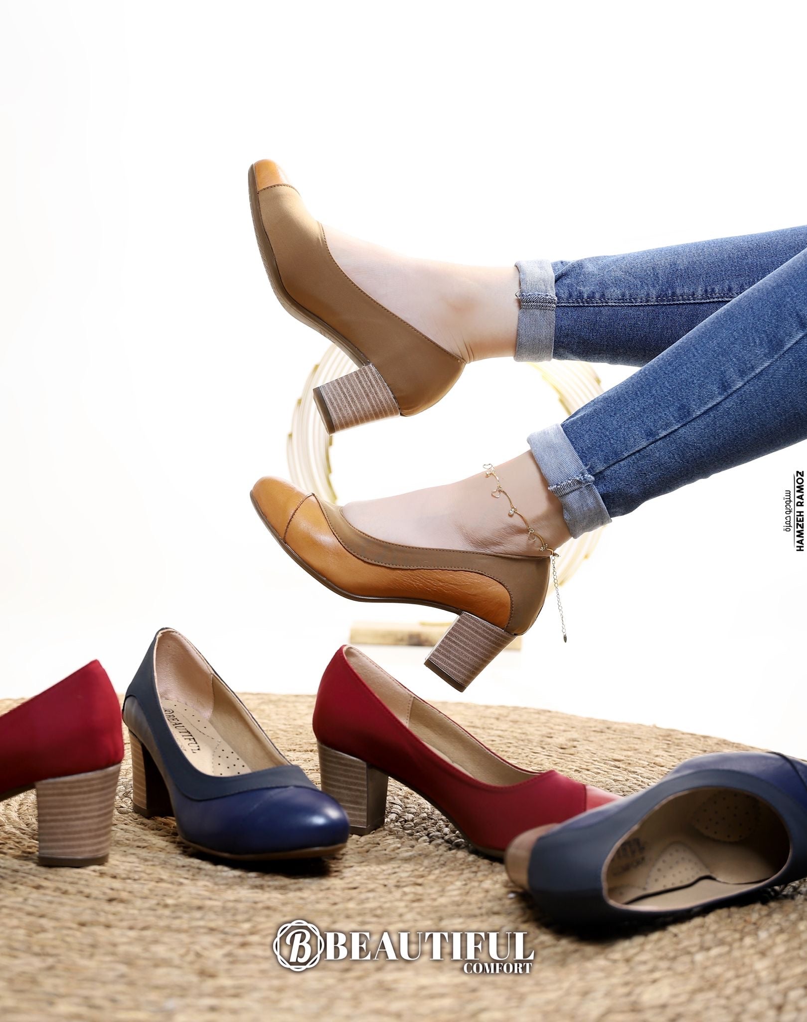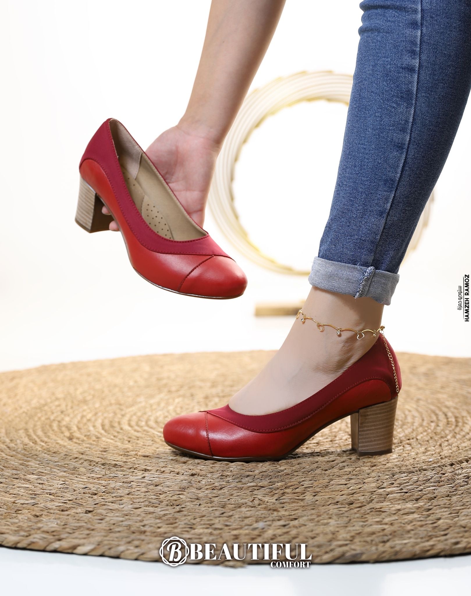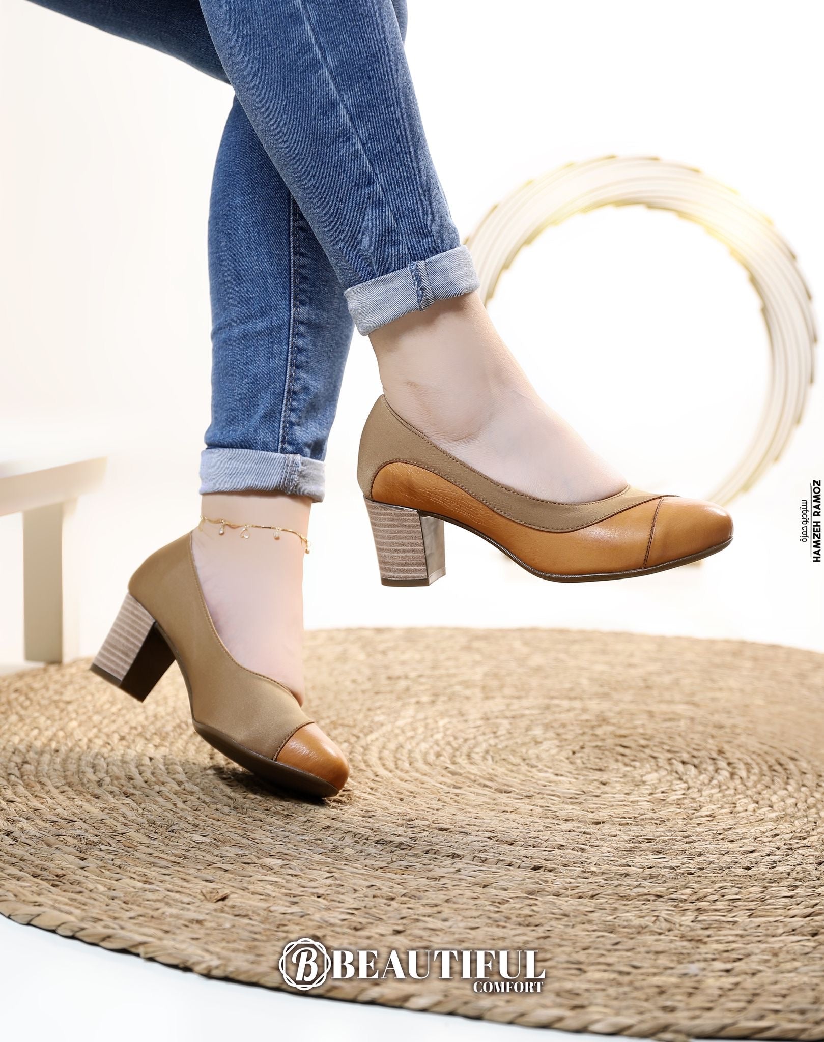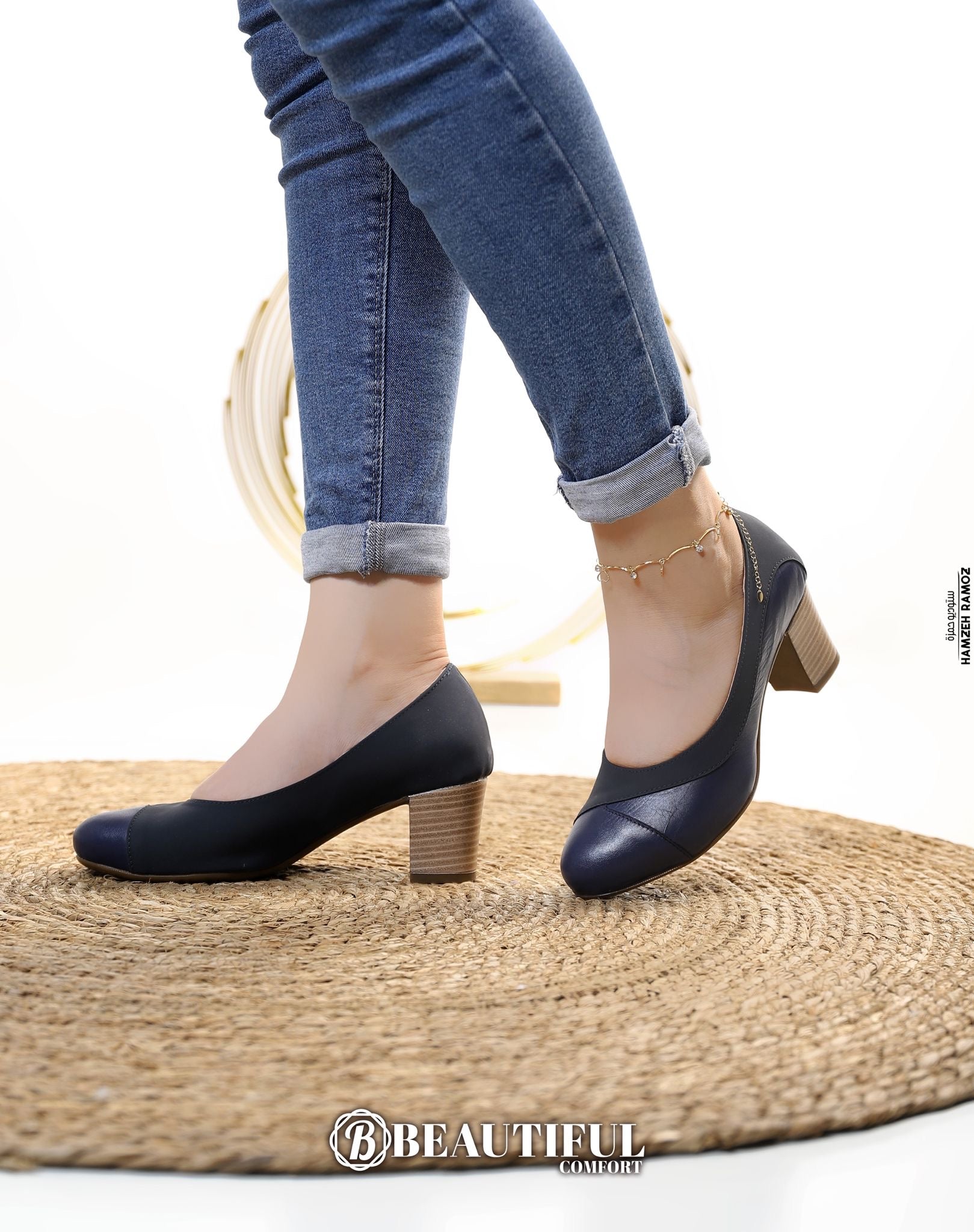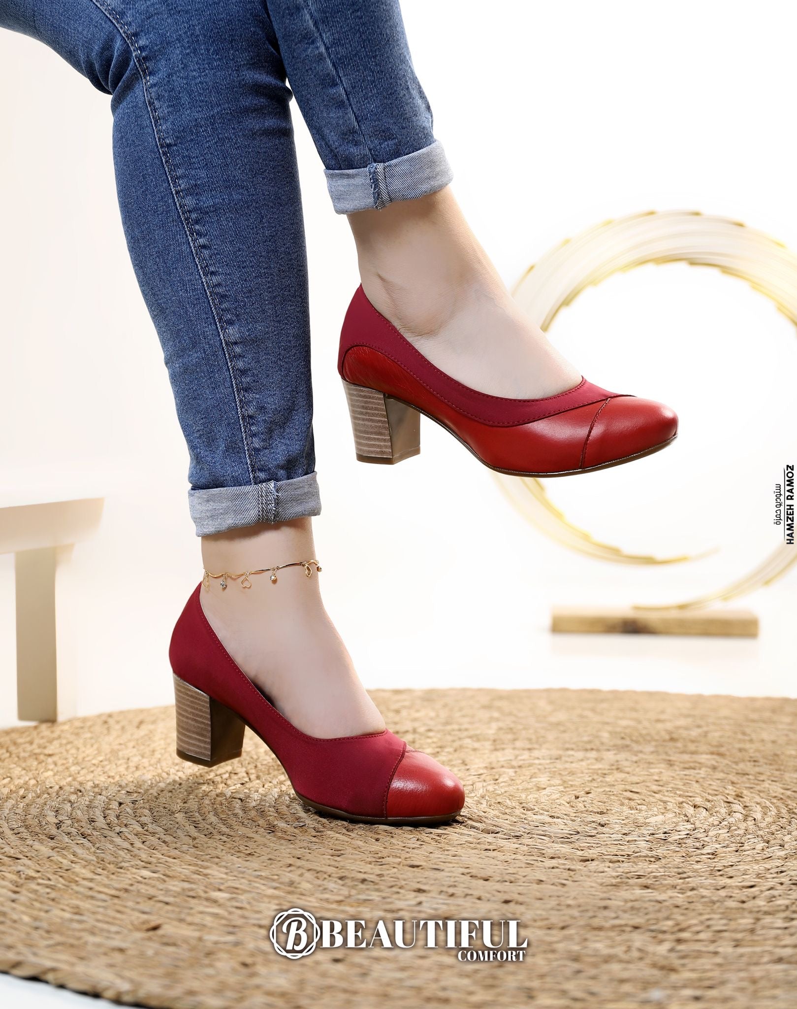 حذاء نسائي أنيق بكعب متوسط الارتفاع، مصنوع من خامة ناعمة عالية الجودة تمنح مظهرًا راقيًا وراحة عند الارتداء.