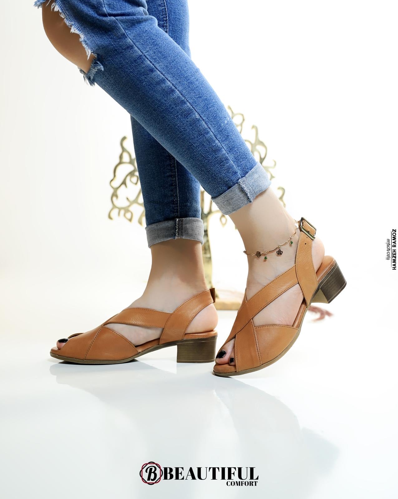 حذاء جلد طبيعي ، مصنوع بأيدي فلسطينية
