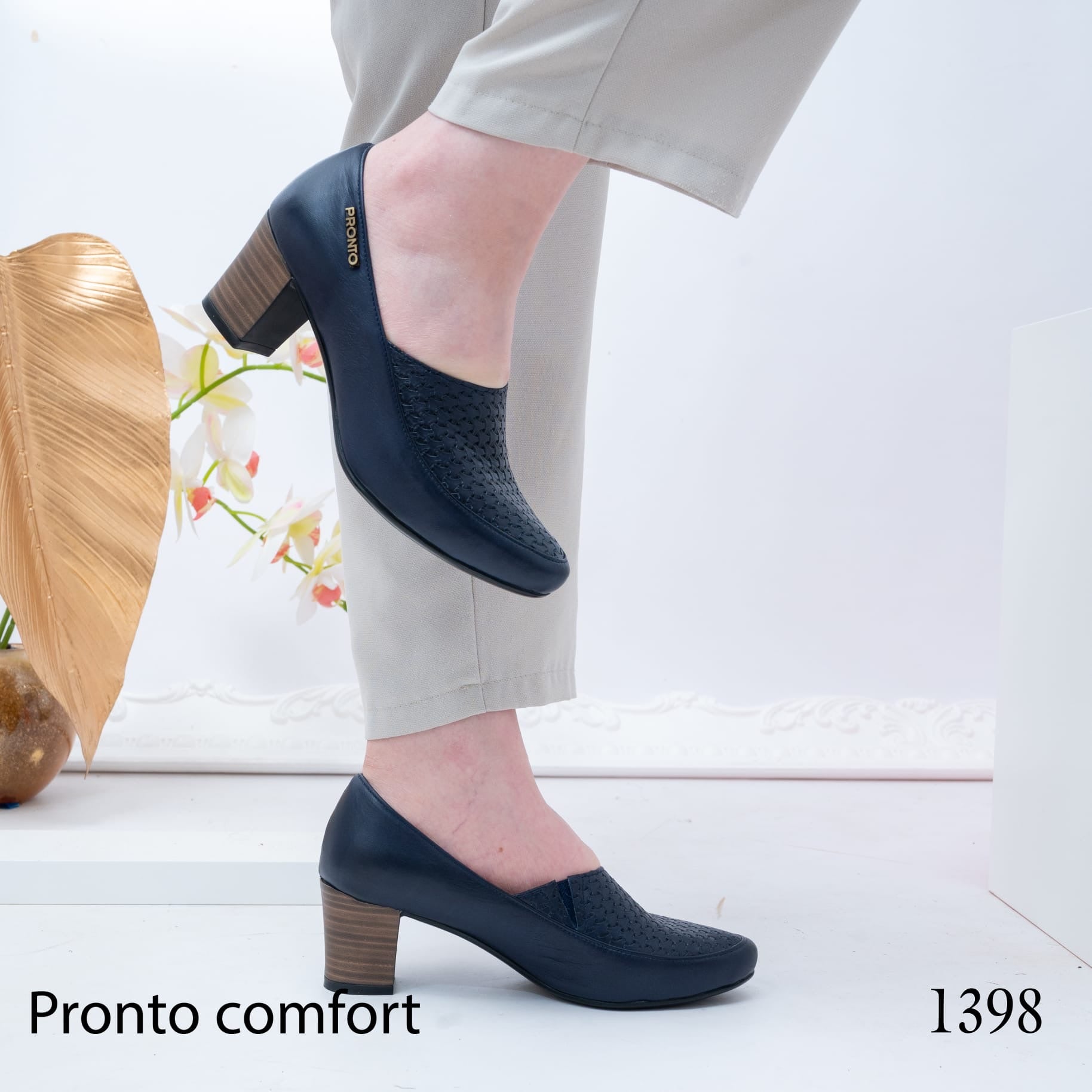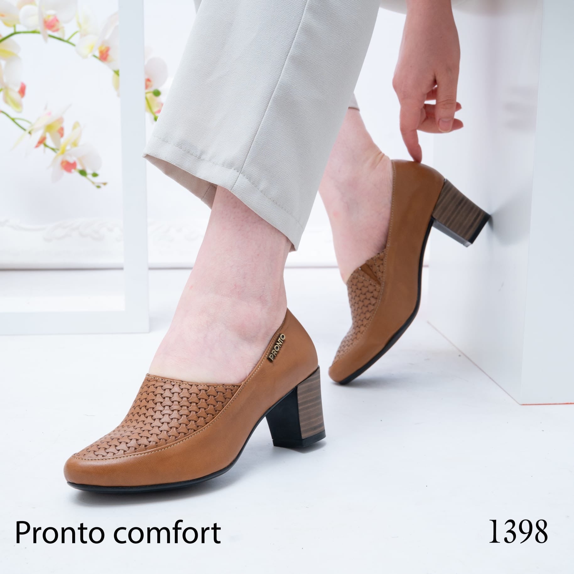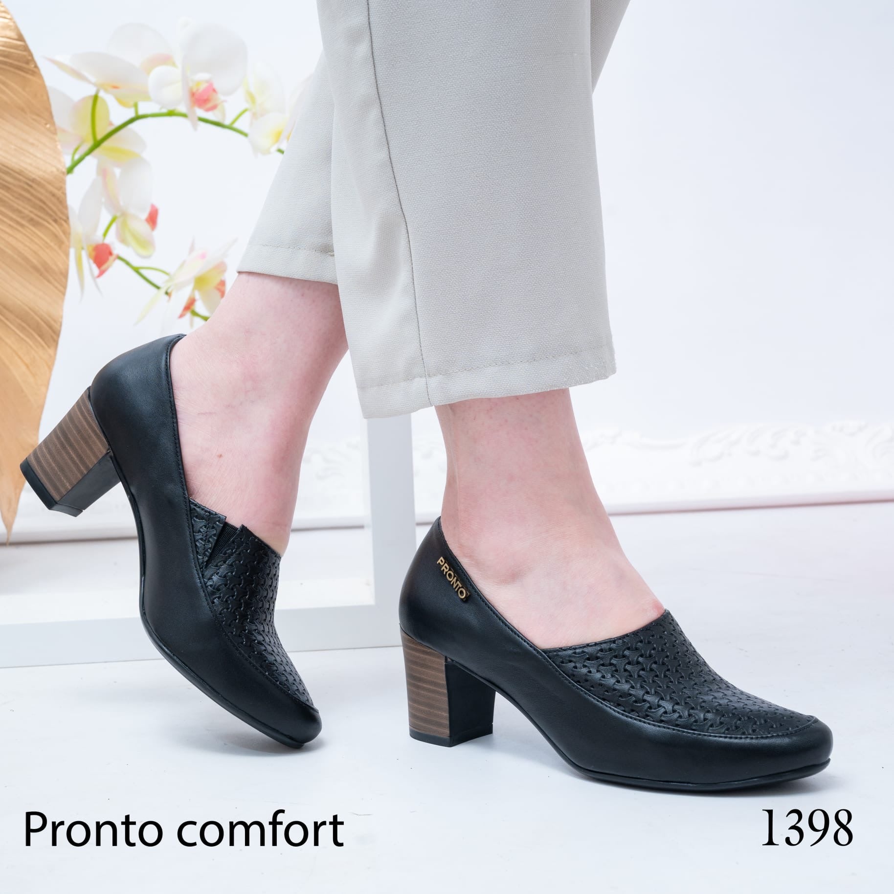 حذاء نسائي بكعب متوسط، تصميم أنيق مع تفاصيل مثقبة، مريح ومناسب للاستخدام اليومي والعمل.