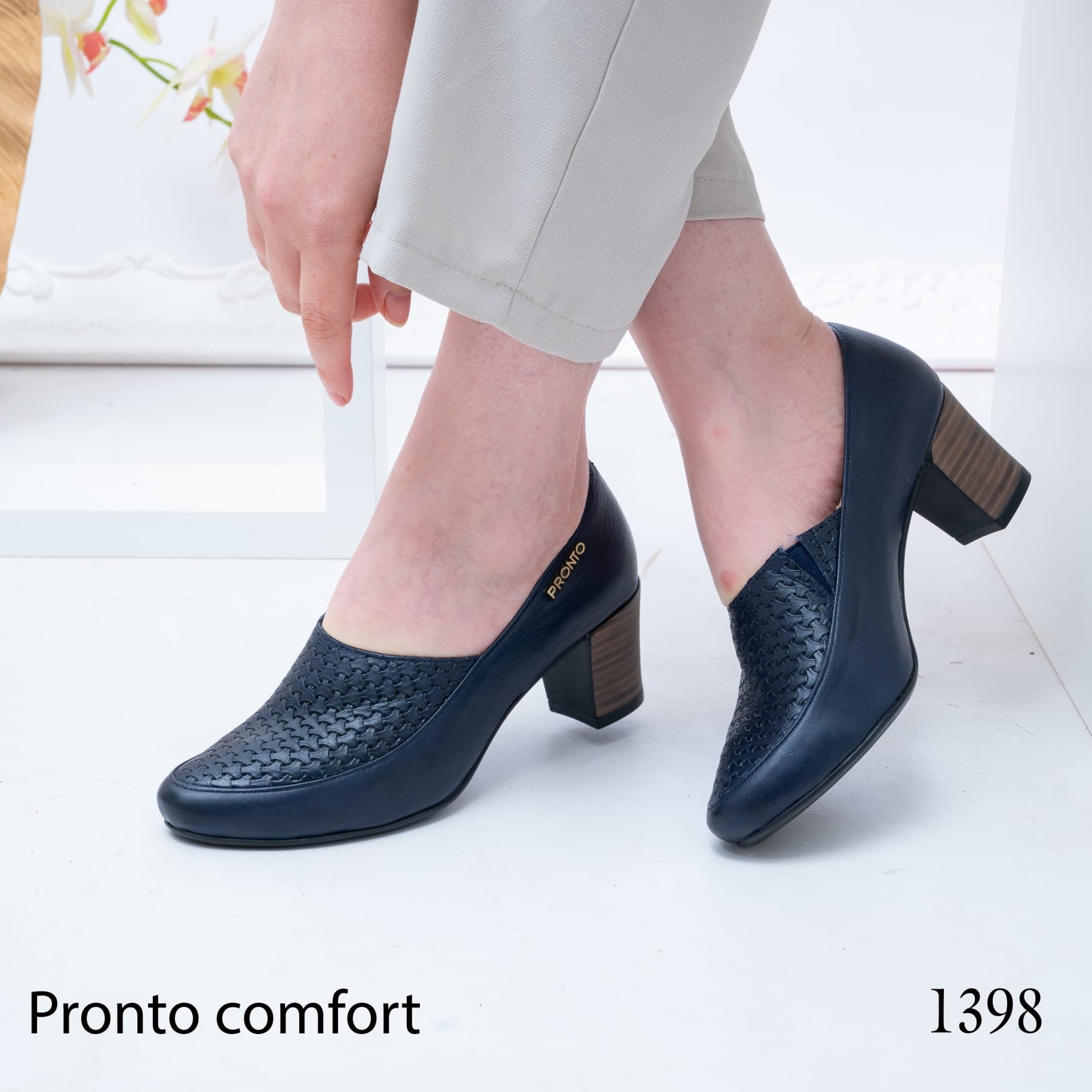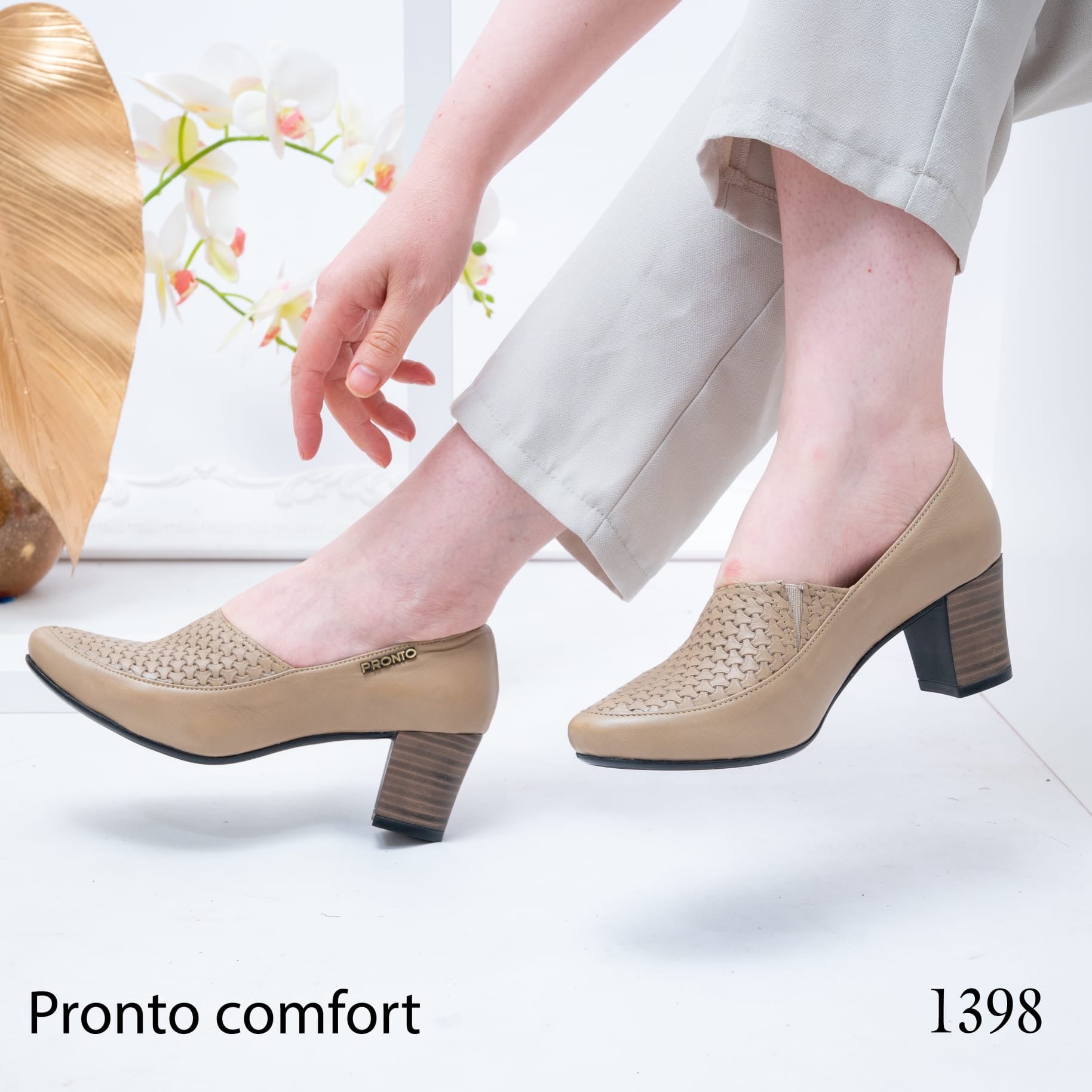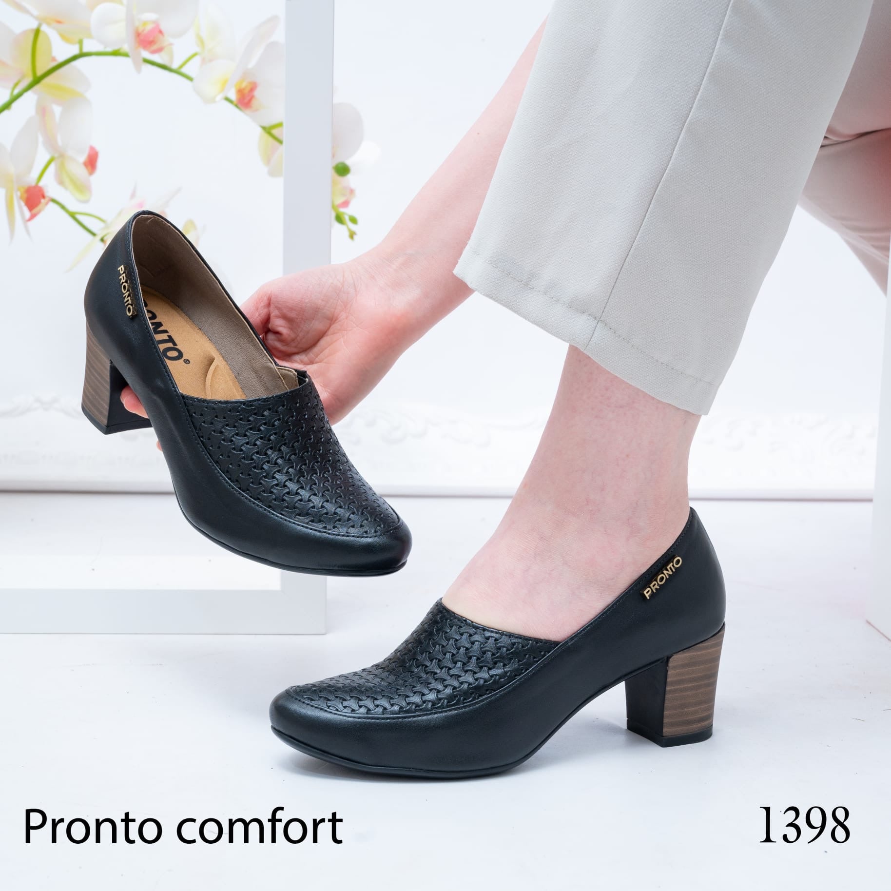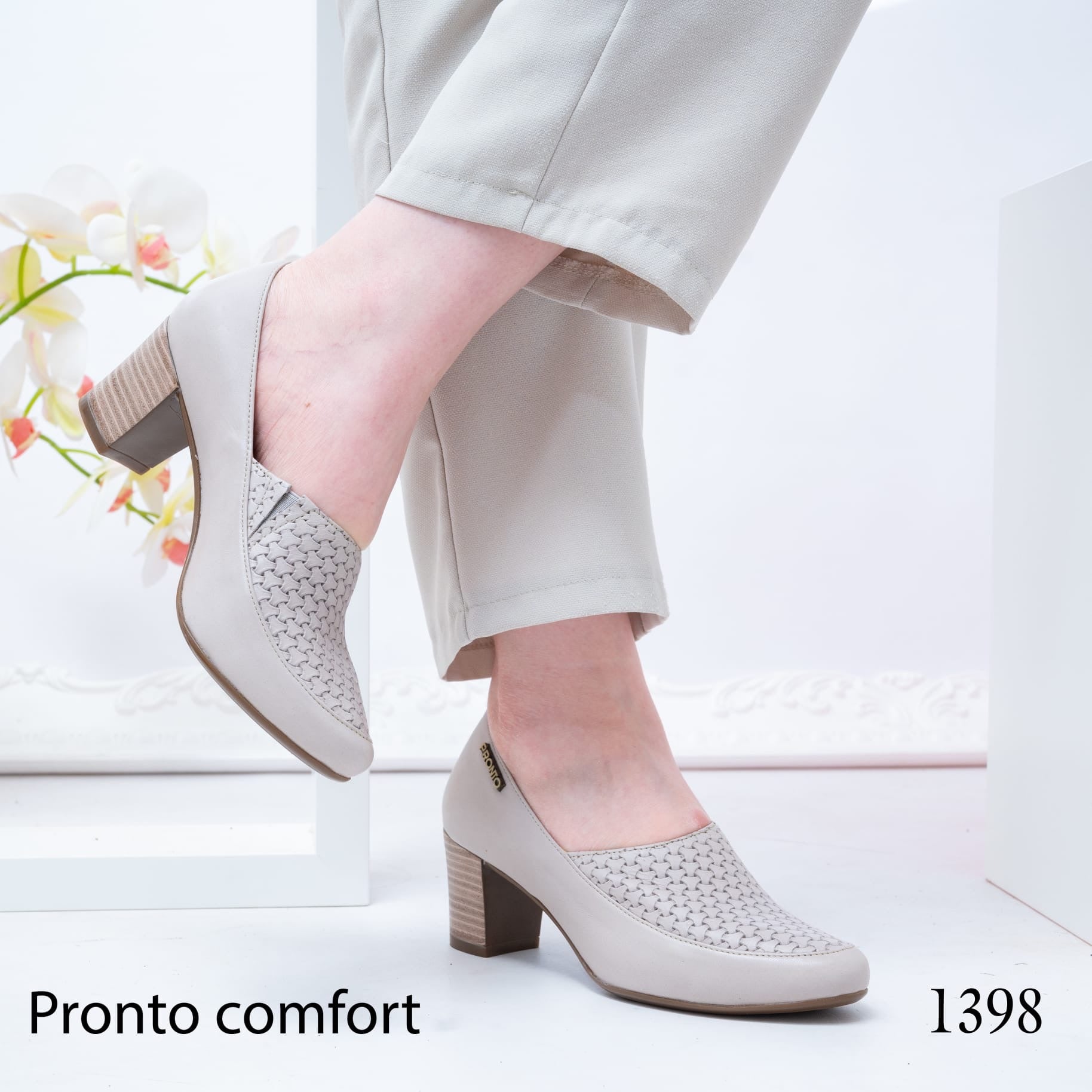حذاء نسائي بكعب متوسط، تصميم أنيق مع تفاصيل مثقبة، مريح ومناسب للاستخدام اليومي والعمل.