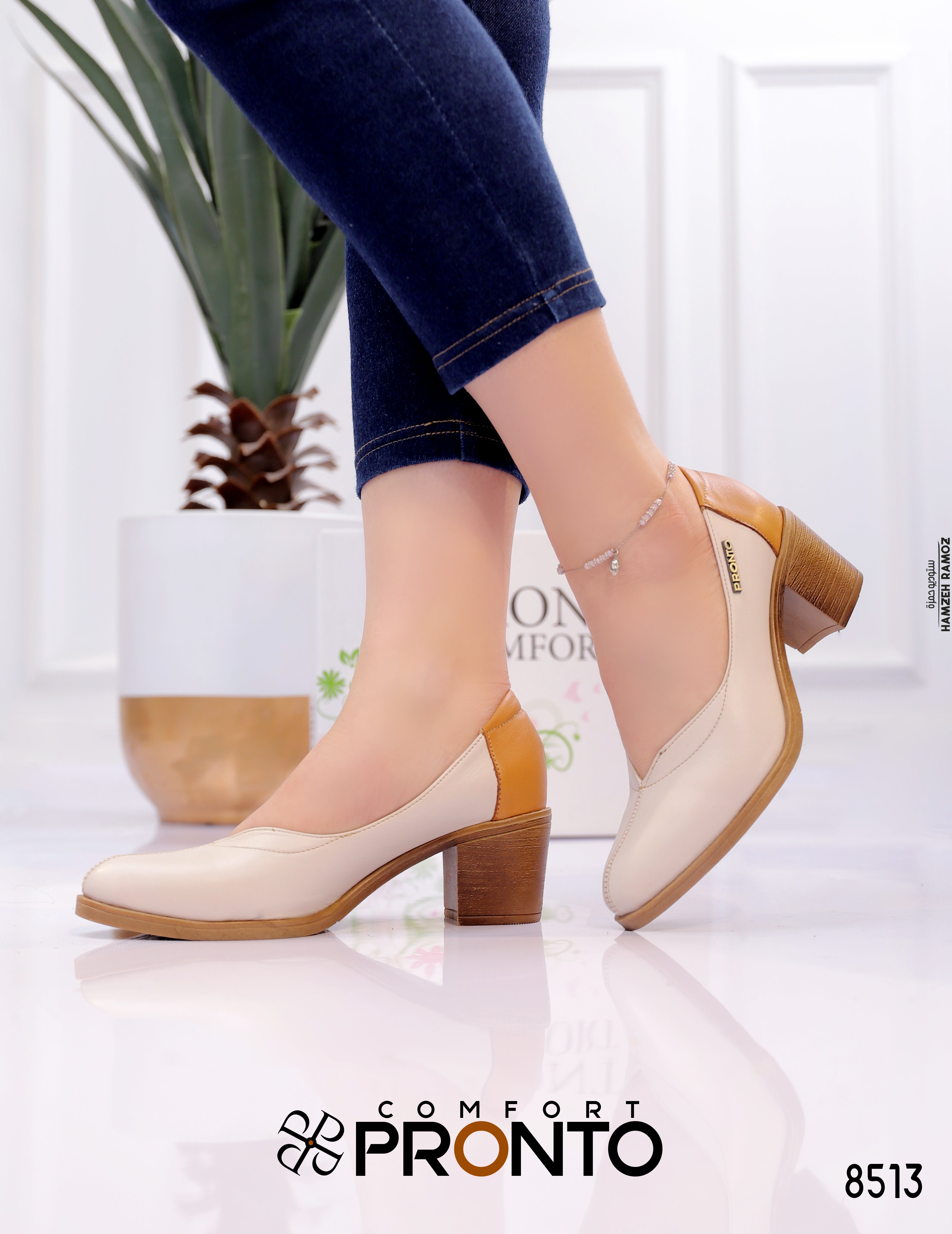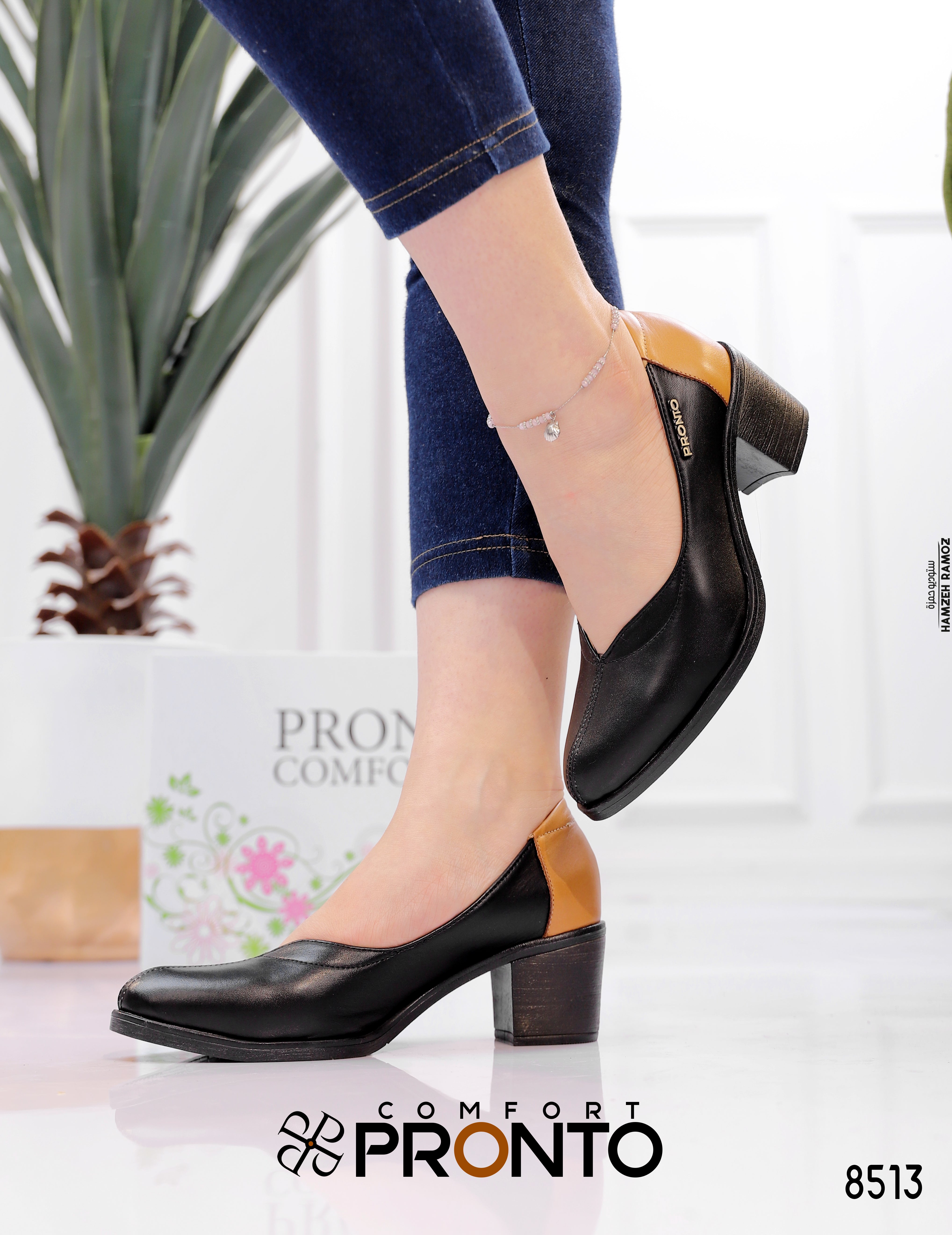 حذاء نسائي بكعب متوسط، تصميم بسيط وأنيق مع ألوان متناسقة، مريح ومناسب للاستخدام اليومي والعمل