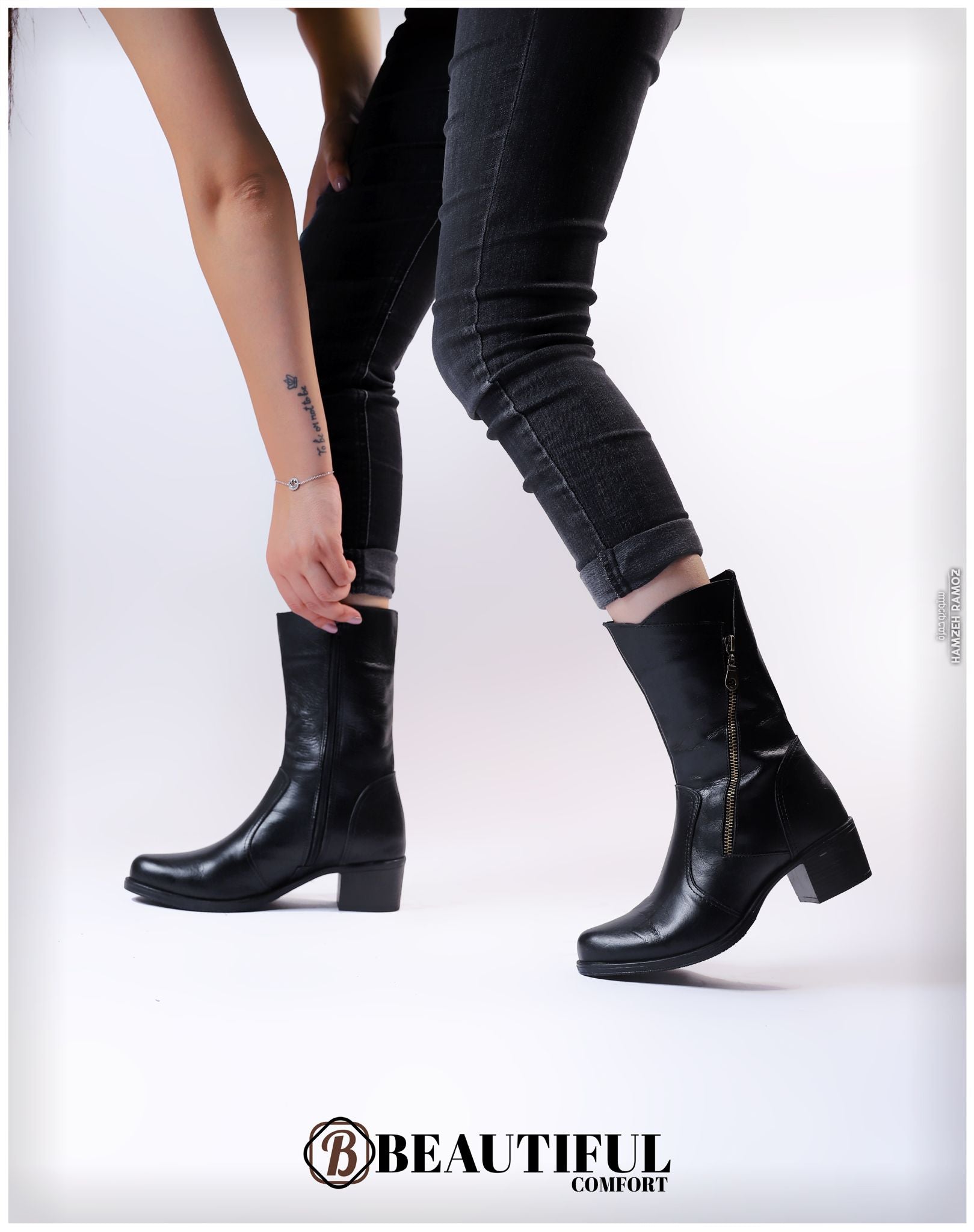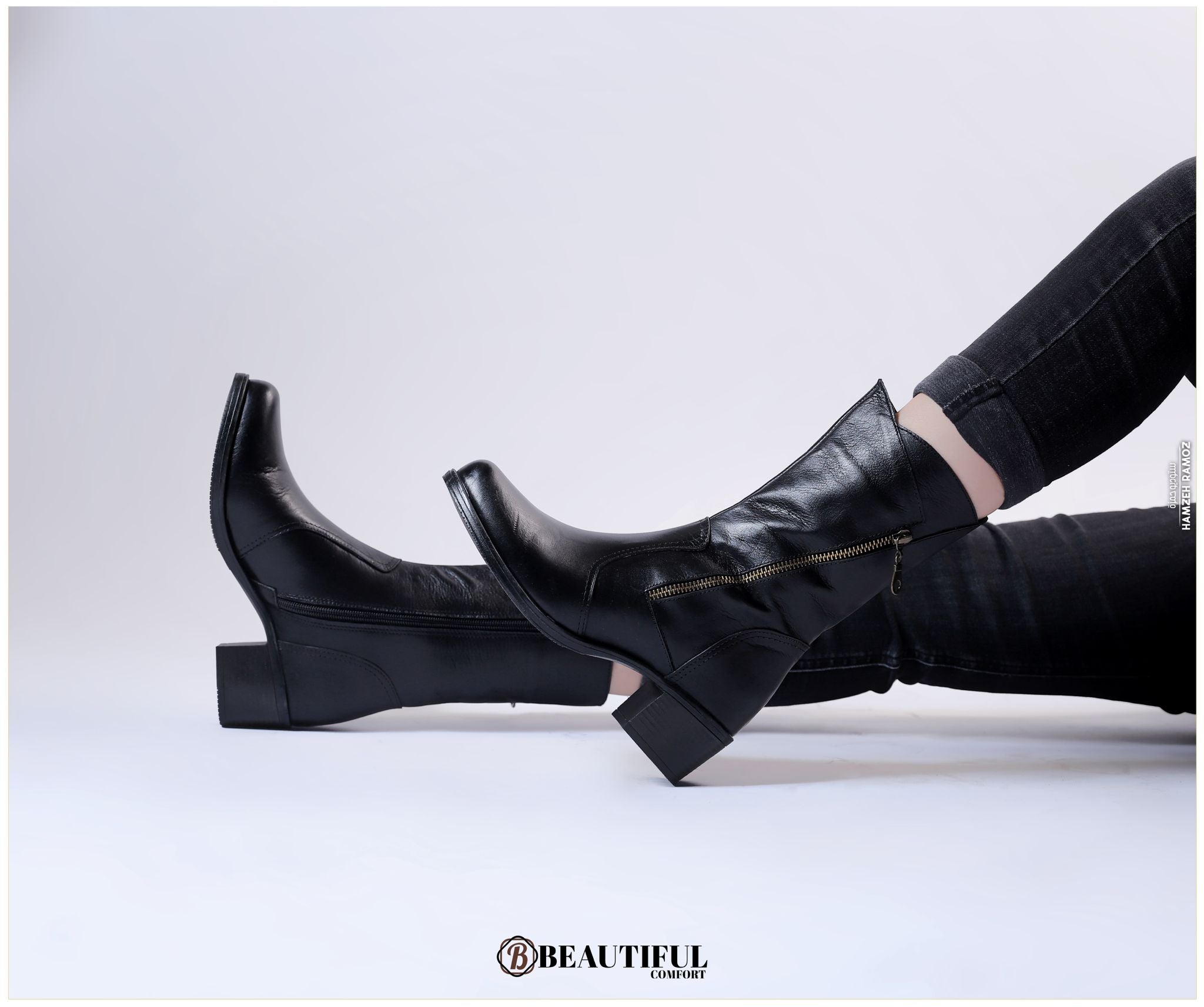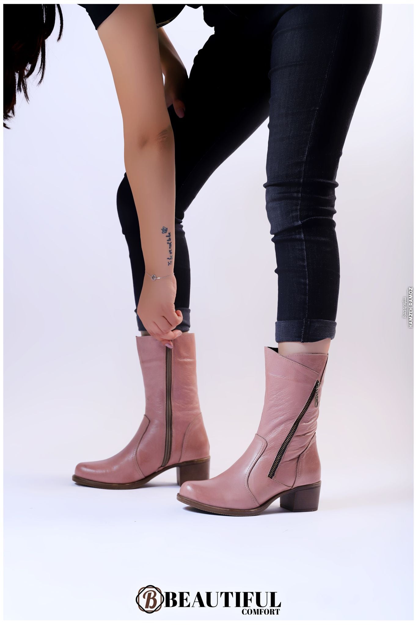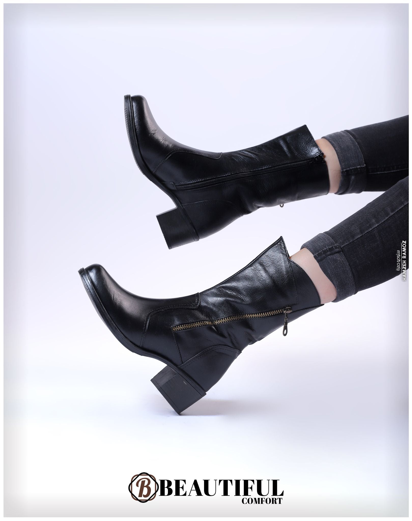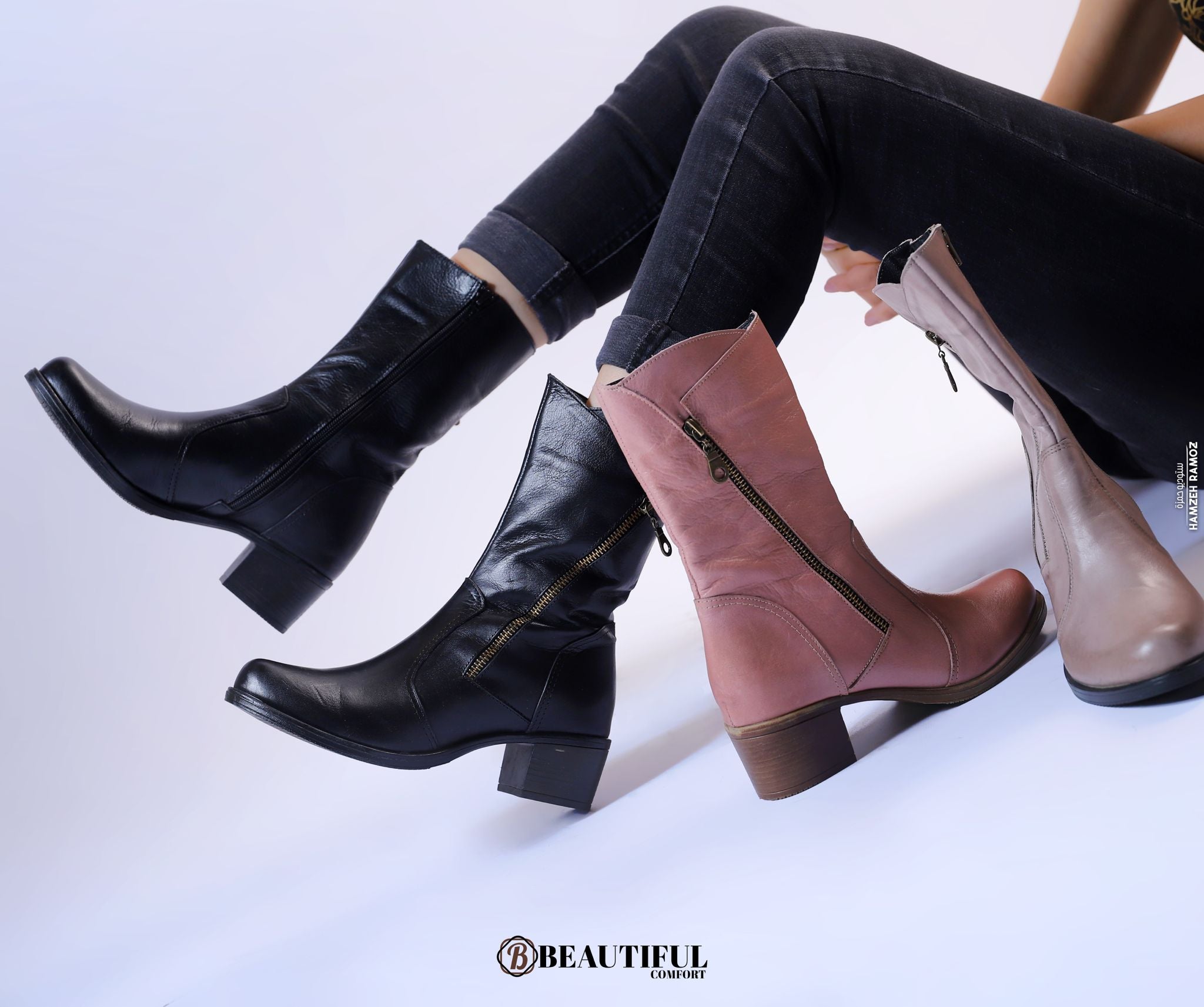 بوت نسائي ، مصنوع من خامة ناعمة مع سحاب جانبي لسهولة الارتداء
