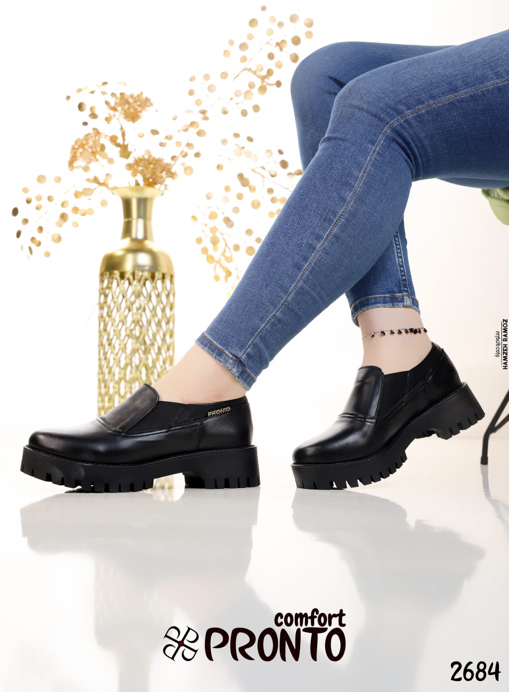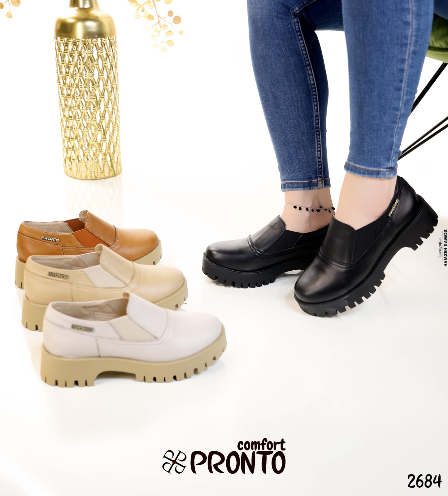 حذاء نسائي عملي من جلد ناعم، بنعل سميك ثابت وتصميم مريح، مناسب للاستخدام اليومي والمشي