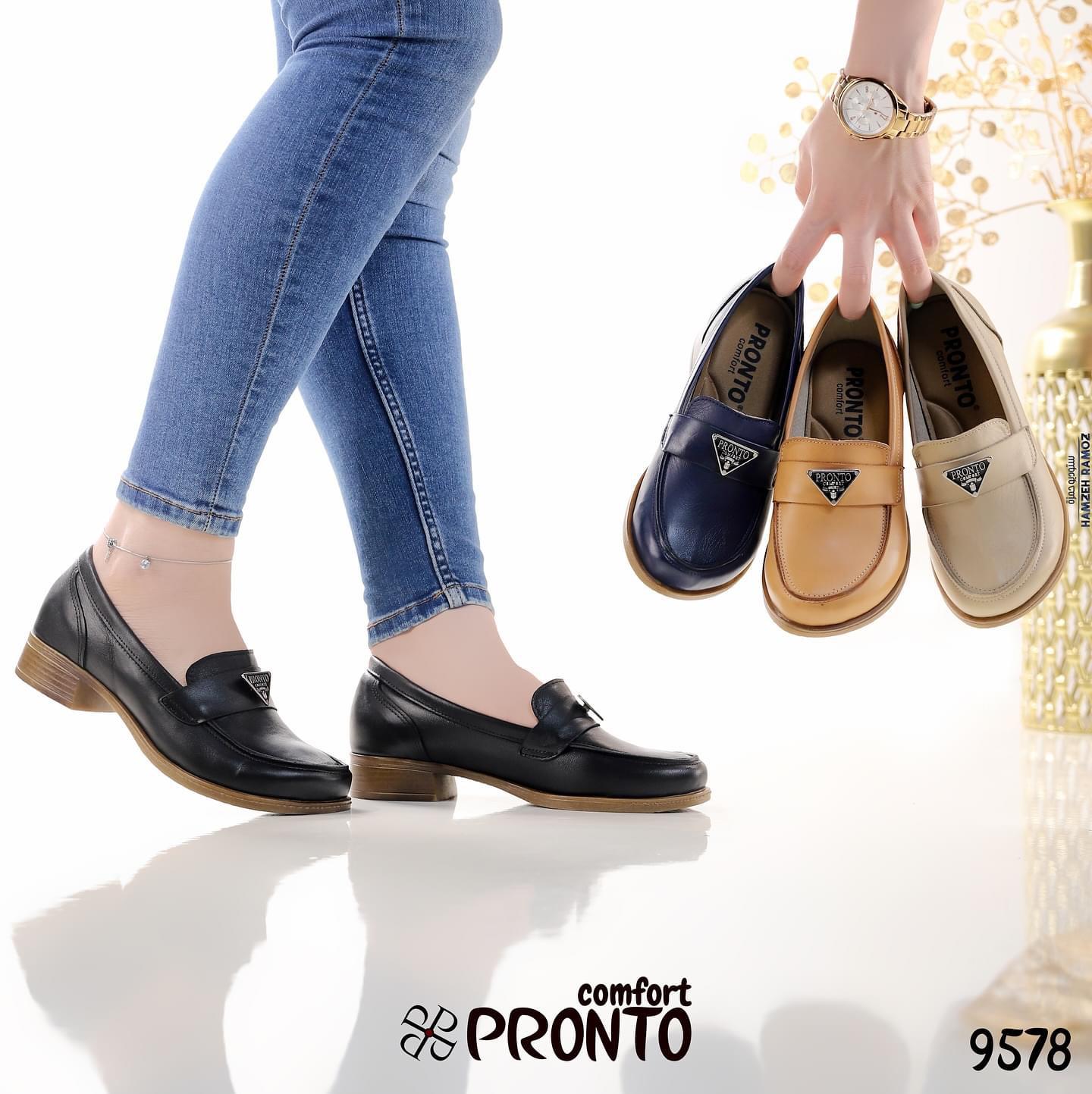 حذاء سليب أون بكعب واطي، مريح وعملي، تصميمه أنيق وبناسب الشغل والمشاوير اليومية